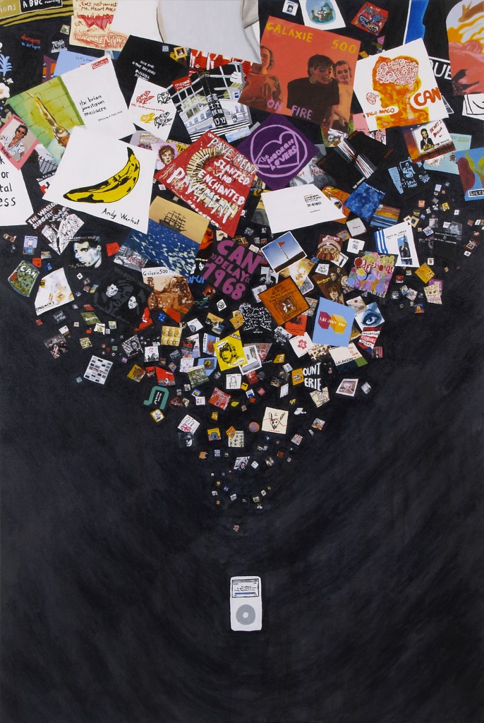 From the 2008 Exhibition catalogue from the exhibition at Greenaway Art Gallery, Australia: On 25 May 2006 I purchased an iPod Video (now termed ‘iPod Classic’). It can store and retrieve around 5,900 songs. I spend most of my time updating this database – adding and removing songs to try for the perfect balance. I make playlists to try and encapsulate certain moods or to group favourite songs in the one easily accessible place.