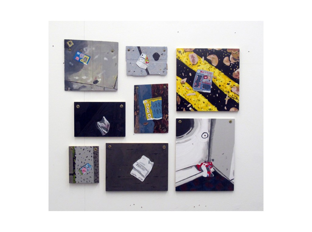 Image List: A Group of Losers, installed at the Florence Trust during a residency exhibition in 2014, Losers (Homerton High Street 3) (Appeared in the finalists John Moores Painting Prize at the Walker Arts Centre, Liverpool, UK), Losers (Cambridge Heath Road 4), Losers (Broadway Market 2), Losers (Bermondsey Street 3), Losers (Bus Shelter Cambridge Heath Road), A Group of Losers, installed in the Plus Arts Projects exhibition at the Mayor’s Parlour in 2012, Bow, London, A Group of Losers, installed in the Losers solo exhibition at Gag Projects in 2013, Adelaide, Australia, Works installed in the Losers Walking Tour 2014 around Homerton, London as part of the Artlicks Weekend Festival with people on the tour.